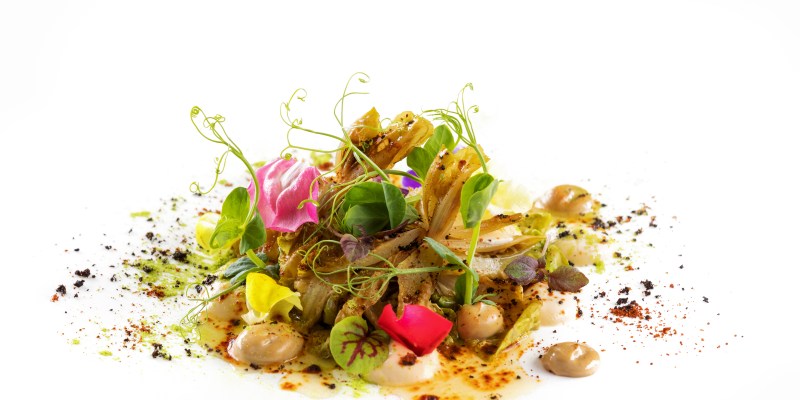 Take the date night up a notch with handcrafted Italian specialties complemented by panoramic city views at il Cielo, one of the most romantic semi-alfresco Michelin-plated rooftop Italian restaurants in the city. Nestled on level 24, couples can expect thoughtful and intricate creations using fresh, seasonal Italian and Japanese ingredients presented by resident Chef Yohhei Sasaki. Begin the five-course experience with a glass of Champagne followed by a delightful surprise of a warm starter that is Insalata alla Cacciatore: a deconstructed, traditional stewed meat dish with dollops of chicken mousse and mushroom mayonnaise over marinated butter lettuce sprinkled with dried olive and tomato powder.