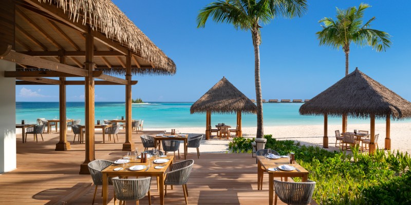 World-renowned chef Dave Pynt, mastermind behind Singapore’s Michelin-starred restaurant Burnt Ends, offers his expertise to the island’s barbeque grill restaurant, The Ledge. The restaurant features his signature, custom-built, four-ton, dual-cavity oven and elevation grills, enabling the use of techniques such as smoking, slow roasting, baking and grilling. Bringing culinary theatre to the Maldives, The Ledge allows guests to witness the preparation of their dish, including favorites such as the Dry Aged OP Rib, a 45-day dry-aged beef rib, and the signature Lobster Roll, a brioche bun stuffed with freshly grilled lobster and lobster aioli.