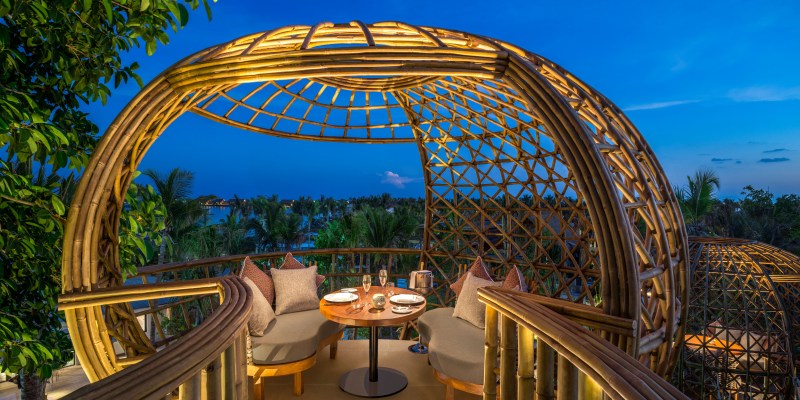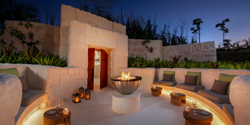 Other dining highlights include Terra, located on the island’s highest point and providing a unique gastronomic dining experience in private dining pods crafted from natural bamboo. Nestled among boulders, The Rock is a rustic wine cellar and dining experience set in a carved-out space, where guests can indulge in wine pairing meals or an elevated dining experience with a menu that pays homage to renowned wine regions around the world.