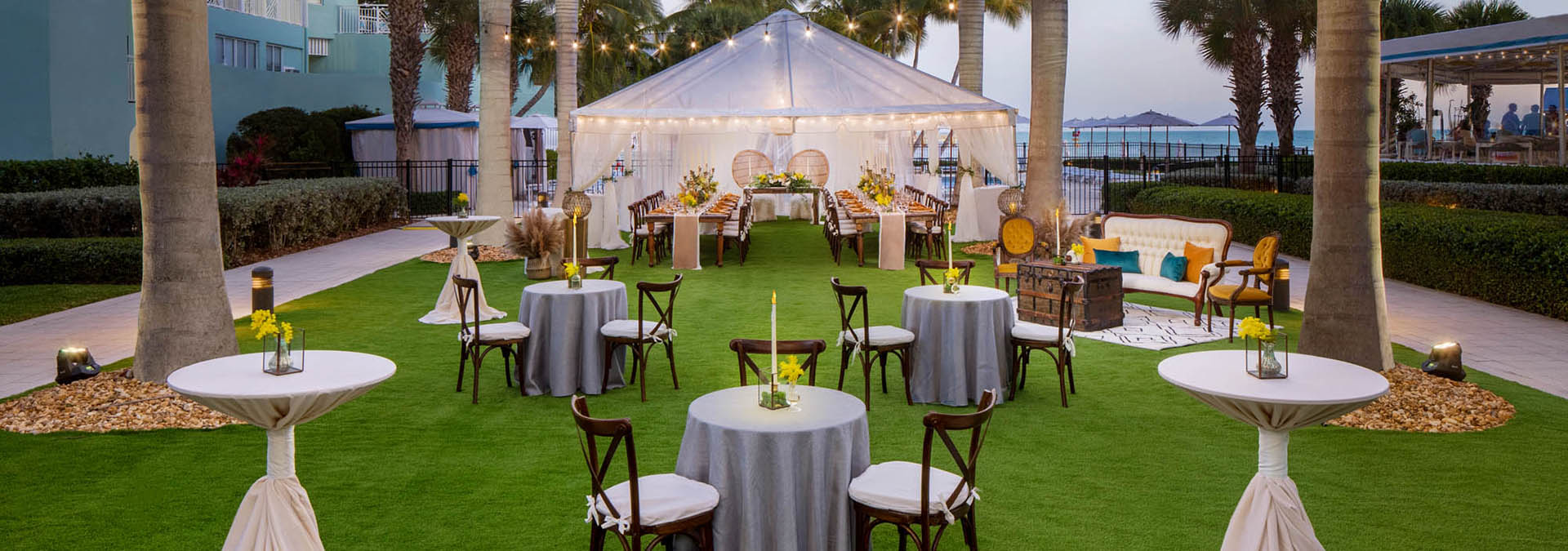Focusing on flexibility helps for an easy planning process. “The No. 1 request from 2021 wedding couples is flexibility in booking terms and minimum spend amounts given the level of uncertainties that comes with planning today,” notes Daniela Davies, Complex Director of Catering and Events at Casa Marina Key West, a Waldorf Astoria Resort.