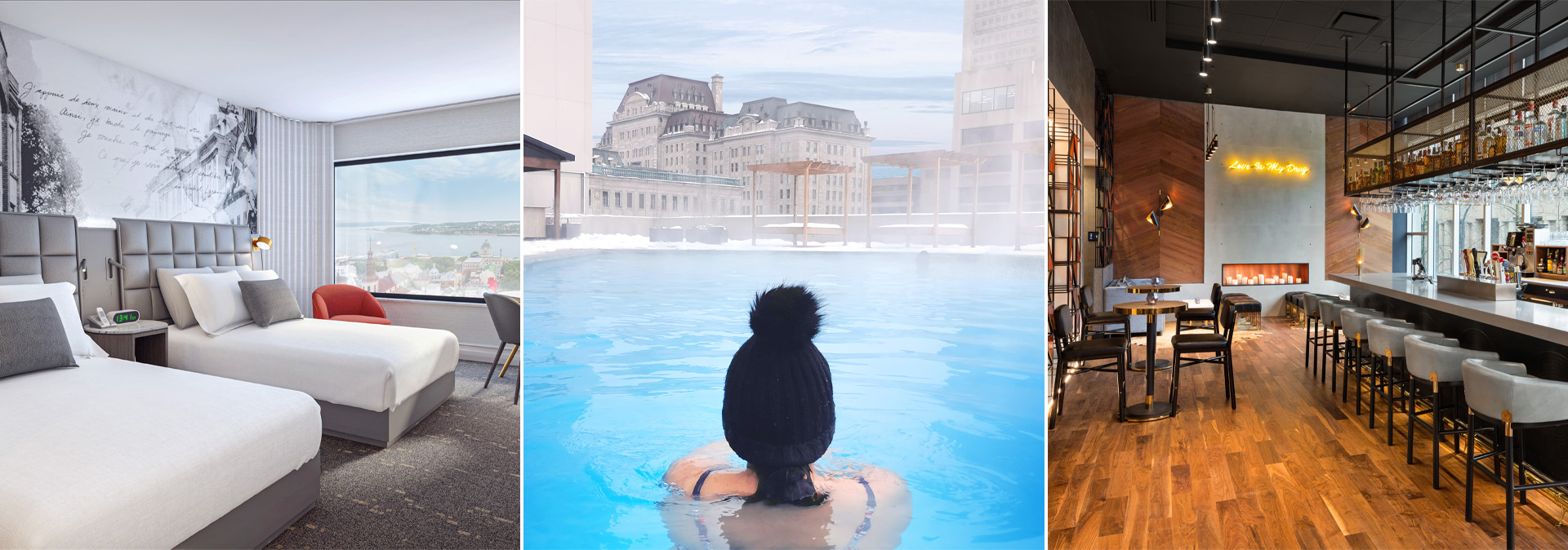 Quebec is a city built around honoring its French and British history. Head to the epicenter of activity in Old Quebec, an area of town that looks like it was plucked from a fairy tale with its cobblestone streets and European architecture. Here you can shop the boutiques along Petit-Champlain, one of the oldest shopping streets in North America, or dine outdoors in Place Royale. Or get a birds-eye view of the city with a ride on the Old Quebec Funicular, which has been in operation since 1879. Hilton Québec reopened its doors to guests following a $70 million renovation in January. Each room offers an incomparable view of Old Quebec, the Plaines of Abraham, the St-Lawrence River and the Laurentian mountains. Culinary aficionados can look forward to food and beverage offerings from renowned Executive Chef Simon Renaud showcasing local, authentic ingredients from Québec and Canada. Situated in the hotel’s lobby, the hotel’s newest addition, CABU boire et manger presents inventive and comforting cuisine featuring locally-sourced products from throughout the region which is reflected in the dishes, cocktail and wine menus. The restaurant is named in honor of “Caboulots”, small ephemeral wooden cabins built on the St. Lawrence River’s natural ice bridge in the 19th century.