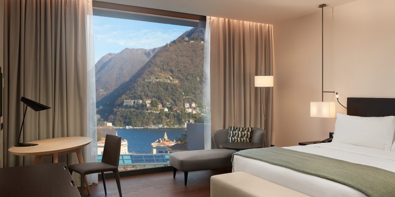 Framed by the lush hills and pristine waters of Lake Como’s western lakefront, Hilton Lake Como is conveniently located steps from the promenade along the lake, amid some of the city’s most romantic villas and luscious gardens between central Como and the Swiss border. Guests can take in majestic lake views through large picture windows in the Deluxe Lake View rooms. Or, book a one bedroom, Superior, or Presidential suite for the most spectacular views. The Presidential Suite offers a private lakefront terrace and pool, as well as a whirlpool bathtub with views of the city below. Outside of the room, visitors can take in even more sights at the hotel’s rooftop infinity pool, sky bar and solarium.