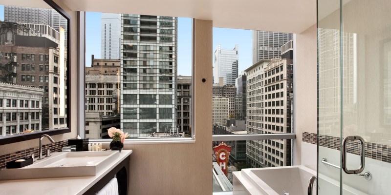 Chicago, also known as the Windy City, is famous for its delicious food, iconic architecture and colorful neighborhoods – all of which are just steps away and in view for guests staying at theWit Chicago – A DoubleTree by Hilton Hotel. Consider a stylish suite for views of the city’s famous architecture or the Chicago River. Choose one of the Paramount Spa Suites, which are located on the top six floors of the hotel, for spectacular panoramic views of the city, Lake Michigan and Millennium Park. Some suites even offer views of the iconic Chicago Theatre sign from the bathroom. For more sweeping views beyond the room, visitors can check out the hotel’s rooftop bar, various meetings and events spaces, and the newly renovated fitness center. After enjoying a relaxing day at Spa@theWit or a meal on ROOF or the State and Lake Chicago Tavern, guests can explore countless nearby attractions, including the Chicago Riverwalk, the Theatre District, Millennium Park, State Street shopping and Magnificent Mile.