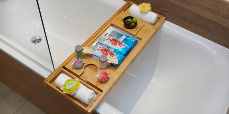 - Relaxation: Pamper yourself in the bath with the luxuries on the wellness tray, including a facial mask, bath salts, bath bomb and bathing flowers, then wrap yourself up in the plush bathrobe and try some deep breathing exercises. Relaxation slows our heart rate, reduces our blood pressure and relieves tension.