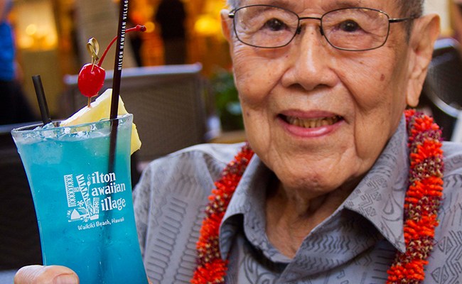 On Jan. 3, 1957, the head bartender of Hilton Hawaiian Village Waikiki Beach Resort, Harry Yee, created the Blue Hawaii tropical drink. The refreshing beverage, a combination of blue Curacao, light rum, vodka and a sweet and sour mix, is recognized for its distinct color. The cocktail became an instant hit and remains popular around the world today. Yee, the head bartender at the resort for more than 30 years, went on to invent 15 more iconic cocktails, including the Tropical Itch and Hawaiian Eye. Browse the photos to see Yee with this Hilton creation, including at a 100th birthday party thrown for him by Hilton Hawaiian Village Waikiki Beach Resort in September 2018.