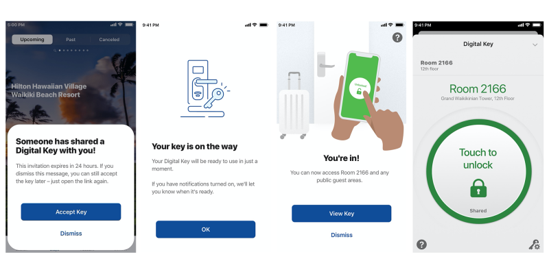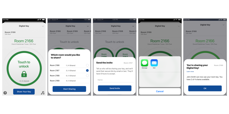 How it Works: The primary guest can share their active Digital Key with up to four additional people or devices from the Hilton Honors app. For the secondary guest to gain access to the Digital Key, they must receive an invitation from the primary guest, be logged into the Hilton Honors app and pass a security check that happens instantly in the background. Guests who accept a share will have access to the room throughout the duration of the stay and, for security purposes, cannot further share the Digital Key.