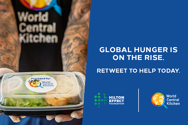 MCLEAN, Va. - The Hilton Effect Foundation announced today on Giving Tuesday it will donate $1 for every retweet within 24 hours of posting to World Central Kitchen to support those facing food insecurity, up to $100,000 USD. Over the last year, the Foundation has donated more than $1 million to support communities around the world grappling with the impacts of the COVID-19 pandemic, including nearly $250,000 in donations connected to food insecurity.