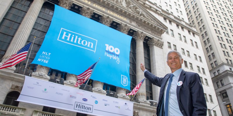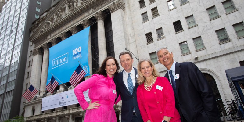 As Hilton prepares to celebrate its 100th anniversary on May 31, Hilton President & CEO Chris Nassetta was joined by a special group of colleagues at the New York Stock Exchange (NYSE) today to ring the opening bell. Along with corporate leaders including Kristin Campbell, General Counsel; Kevin Jacobs, Chief Financial Officer; and Jill Slattery, Vice President of Investor Relations, Nassetta was accompanied by 10 Team Members who exemplify the spirit that has brought Hilton to where it is today.
