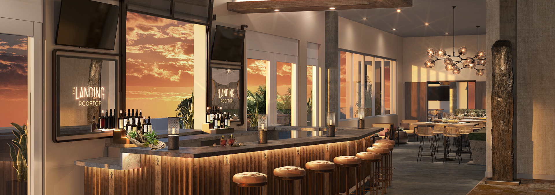 Hotel Melby offers The Landing Rooftop, with 180-degree views of the city and waterways, and specializes in American fare, serving craft cocktails along with entrees such as a burrata & tomato salad, truffle & brie grilled cheese, The Melby Burger and braised short ribs. In addition to the on-property offerings, guests can also enjoy a variety of options from the area’s local eateries.