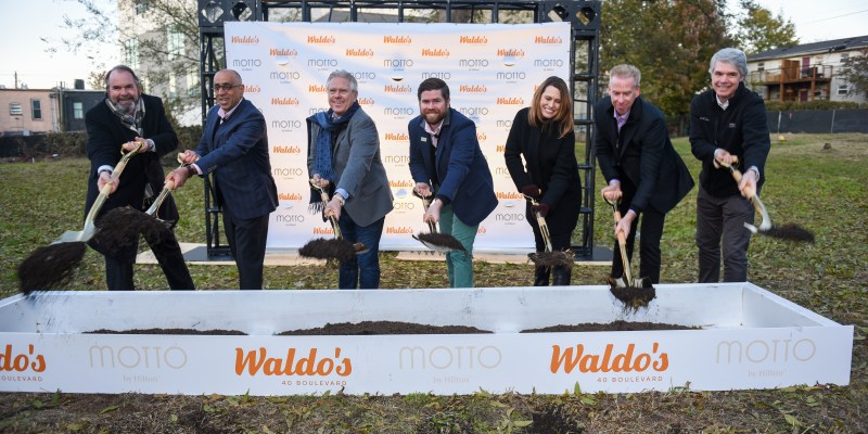 To commemorate the occasion, city officials, community leaders and representatives from Waldo’s and Hilton gathered to mark the start of construction with a ceremonial groundbreaking event. Guests were invited to 40 Boulevard NE to take part in a community-driven event that evoked core elements of the Motto by Hilton experience, including performance art by an Atlanta neighborhood artist and local food and beverages served in a pop-up Motto Commons stand, modeled after the inviting community space that will be a cornerstone of all future Motto properties.